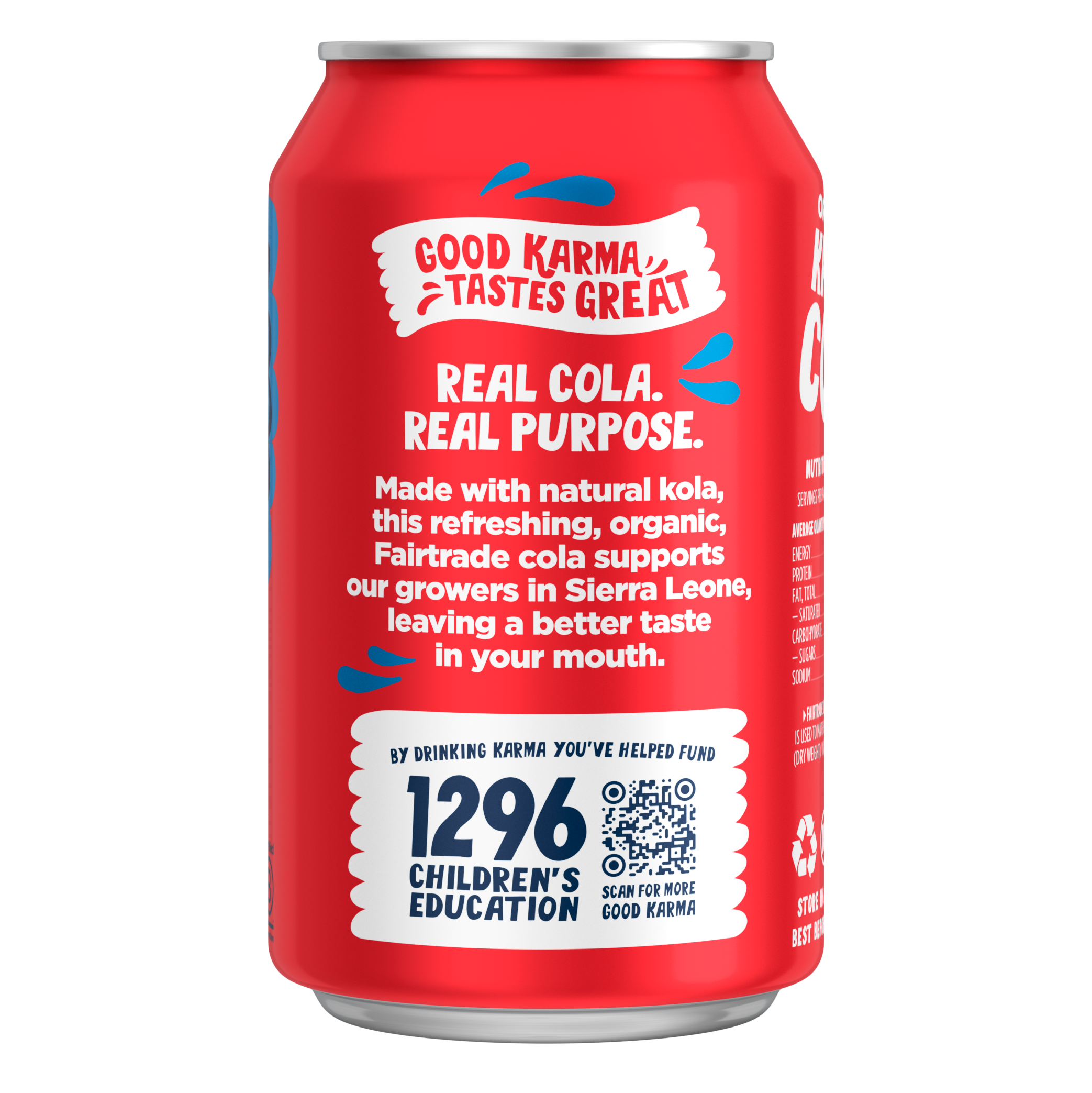 The most delicious refreshing, organic, Fairtrade Cola. Unlike other colas, Karma Cola is made with real Kola nuts from Sierra Leone and is 100% natural.